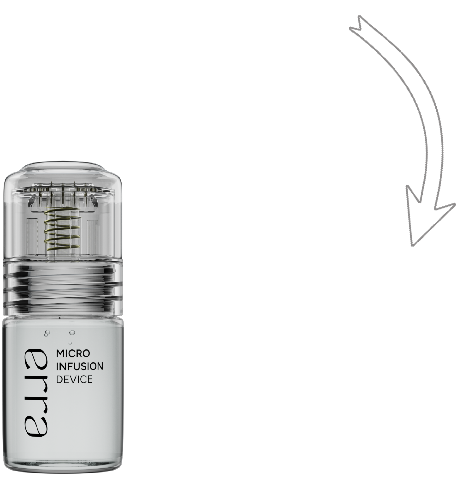 2. Prime — Turn the device upside down for 2 minutes to allow the serum to flow into the needles.